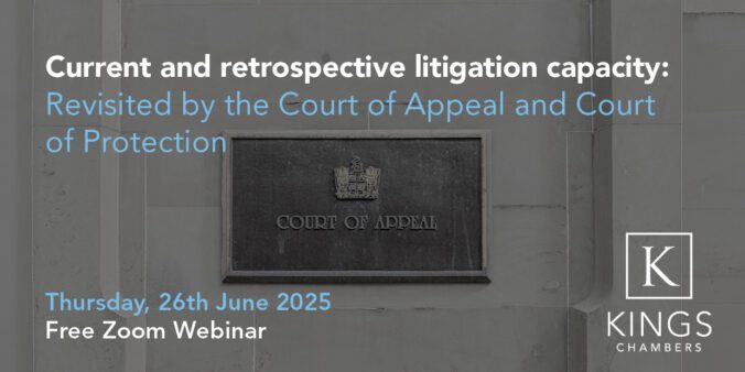 The Kings Chambers Court of Protection Property & Affairs team includes barristers at all levels of seniority. Our dedicated specialist team draws strength from both health and welfare and probate, trust and private client practitioners, giving us a unique expertise across a wide range of Property and Affairs matters. Our deep understanding of social care legislation, as well as the practicalities of catastrophic personal injury settlements (acting for deputies appointed to administer these on behalf of the claimant), places us in a strong position to offer an all-around service. Members of the team also have close links with the Society of Trusts and Estates Practitioners (STEP) and publish regularly on issues relating to Property and Affairs.
