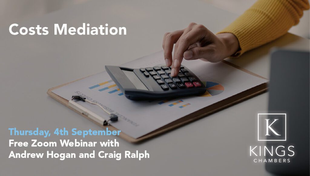 Mediation is on the rise. This timely seminar, delivered by Andrew Hogan and Craig Ralph, addresses the guidance on solicitors’ obligations to advise their clients in respect of ADR generally, the Court’s rules and practice in relation to ADR generally post Churchill v Merthyr Tydfil [2023] EWCA Civ 1416 (inc amendment to CPR r.44.2(5)), potential costs sanctions for refusing to mediate or engage in costs ADR and what may constitute reasonable or unreasonable refusals applying the Halsey principles to costs litigation. It explores facilitative and evaluative mediation and how the Kings’ costs team can help.