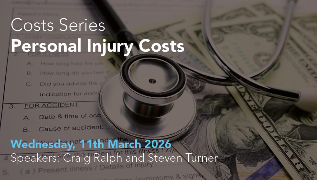 Join Craig Ralph and Steven Turner as they undertake their annual review of current issues in personal injury costs including Part 36, Fixed costs, Vulnerability/Budgeting and deductions from damages in this timely and engaging seminar, suitable for all levels of experience and seniority.